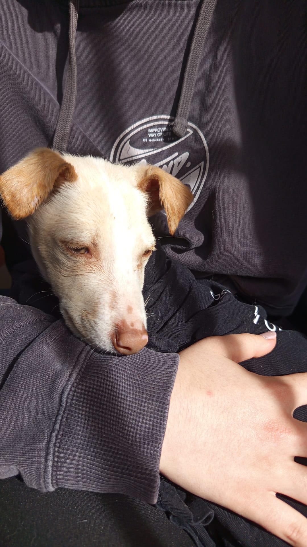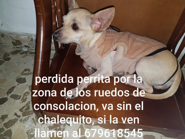 | Detalles: | Perra canela y blanca, cachorra. Muy dócil y buena, se deja acariciar y persigue a las personas. |